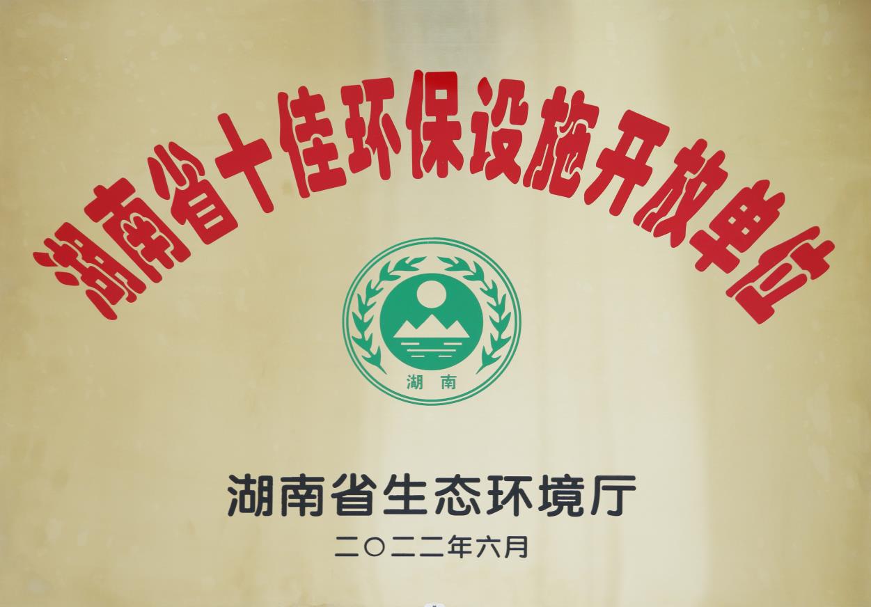 • 2022年6月被湖南省生態環境廳授予“湖南省十佳環保設施開放單位”